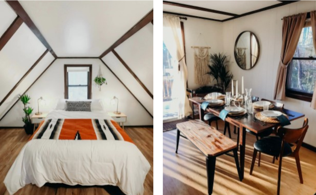 - Burnsville, North Carolina – A quiet escape from city life, this cabin can be found in a secluded area of the Blue Ridge Mountains at the Alpine Village Resort. The impressive mountain views at this unique Airbnb stay create a tranquil quiet and a peaceful setting for any getaway.