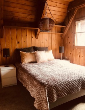 - Intervale, New Hampshire – Vienna Lodge is a rustic cabin tucked away in the mountains with incredible views of the White Mountains. The cozy, unique interior provides a perfect Airbnb stay with a mountain view!